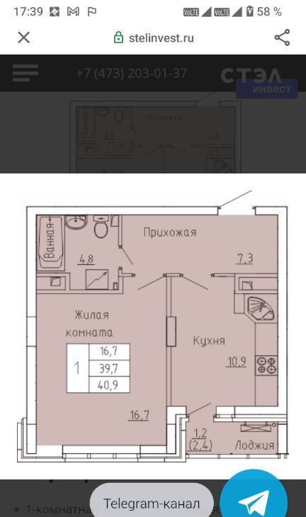 1-к кв. Воронежская область, Воронеж Беговая ул., 49 (41.0 м²)