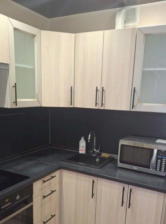 - Кухня снабжена современной мебелью и техникой.