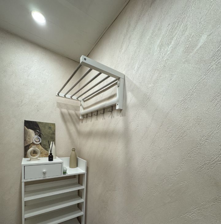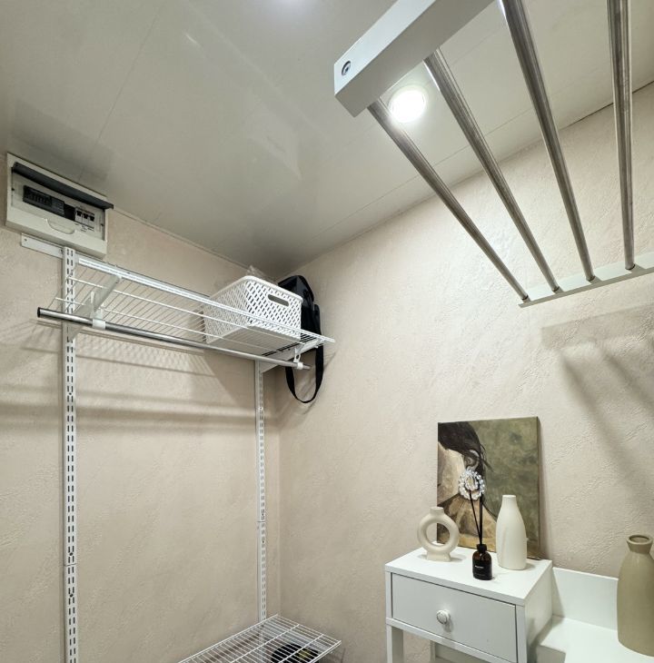 В квартире есть раздельный санузел, оборудованный современной сантехникой и стиральной машиной. Кухня оснащена встроенной посудомоечной машиной, духовой шкаф отсутствует. В прихожей предусмотрена гардеробная для удобного хранения вещей.