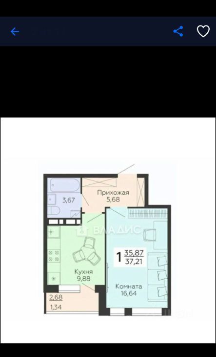 1-к кв. Воронежская область, Воронеж Московский просп., 130к1 (37.2 м²)