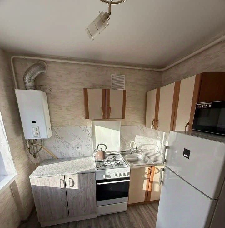 В квартире есть все для комфортного проживания: холодильник, плита, духовой шкаф, микроволновая печь, стиральная машина, кровать, кухонный гарнитур.