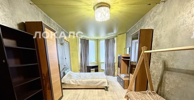 В квартире имеется просторная жилая комната, в которой установлены необходимая мебель и техника для комфортного проживания: отпариватель, двуспальная кровать, односпальная кровать, шкаф, напольная полка, рабочий стол, стенка.