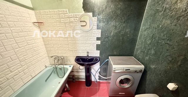 Санузел раздельный: унитаз, ванная, стиральная машина, зеркало, умывальник.