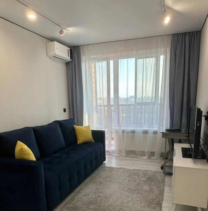 В квартире есть всё необходимое для комфортного проживания. В комнате и на кухне установлена современная мебель, а техника включает в себя кондиционер, холодильник, телевизор и стиральную машину. Просторный совмещенный санузел оборудован ванной. Из квартиры есть выход на лоджию, где можно наслаждаться утренним кофе.