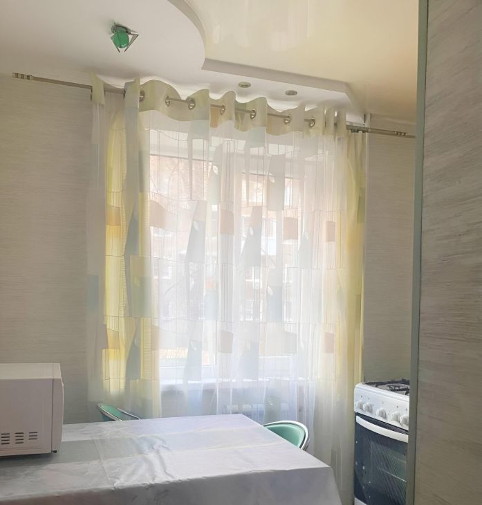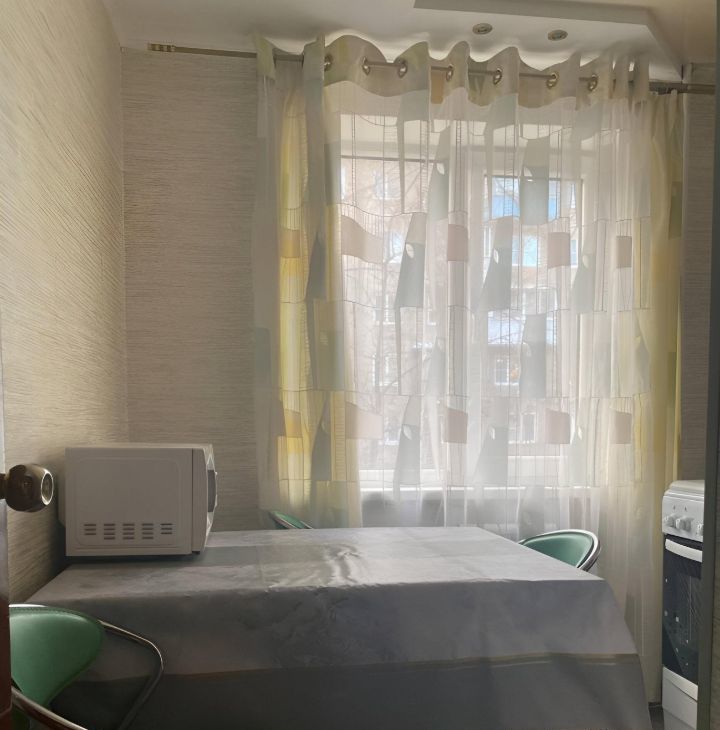 Квартира укомплектована: 2 шкафа, телевизор, диван, стол и стулья, СВЧ печь, газовая плита, стиральная машинка.