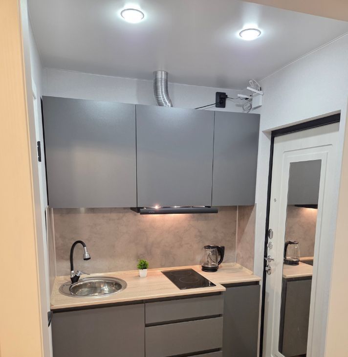 -установлена новая кухня с варочной поверхностью и вытяжкой на гарантии