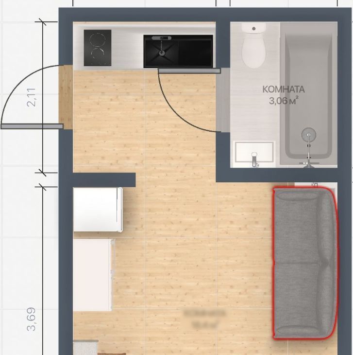 Студия Воронежская область, Воронеж ул. Богдана Хмельницкого, 53А (19.94 м²)