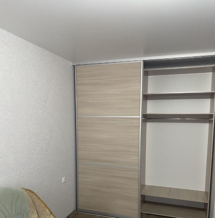 Кухня оборудована необходимой техникой, включая холодильник и микроволновую печь. В комнате установлен вместительный шкаф и диван, обеспечивая комфортное размещение двух человек.