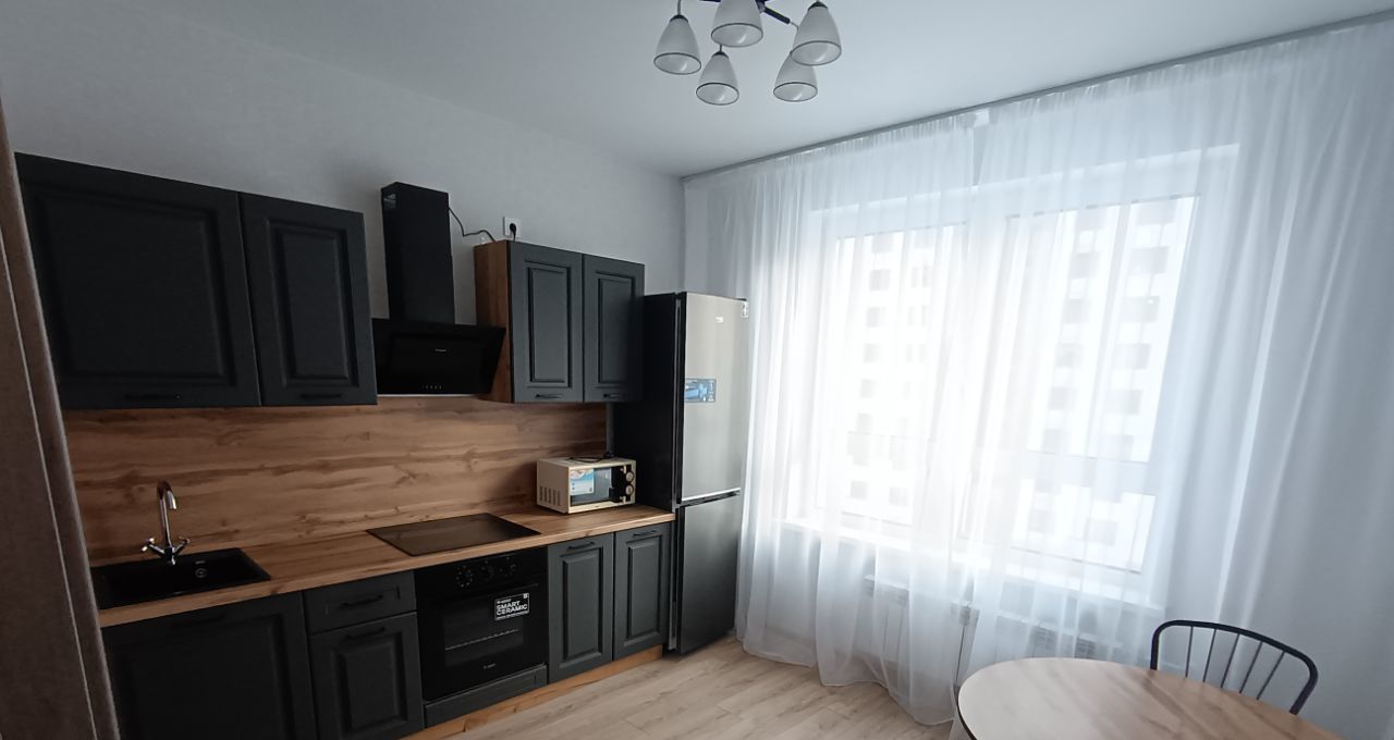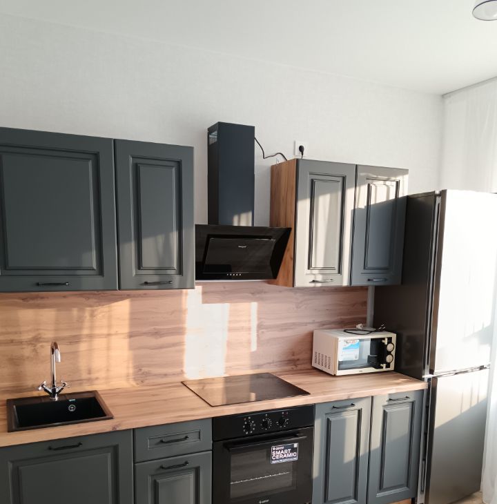 Мебель, техника - всё новое. Всё необходимое для жизни есть: холодильник, микроволновка, стиральная машинка, диван, вместительные шкафы. В летнее время возможна установка кондиционера при необходимости. Ремонт от застройщика. Дом сдан в декабре 2025г.