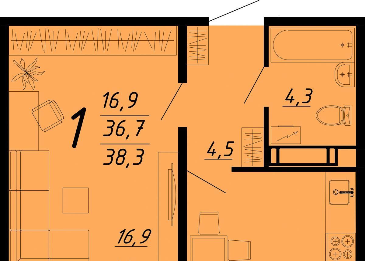 1-к кв. Воронежская область, Воронеж Московский просп., 126 (38.41 м²)