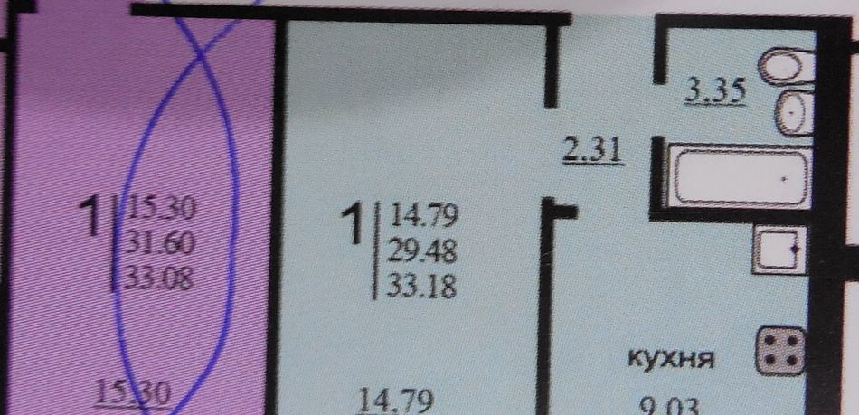 1-к кв. Воронежская область, Воронеж ул. 20-летия Октября, 105/2 (30.2 м²)