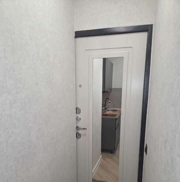 -новая железная входная дверь с зеркалом