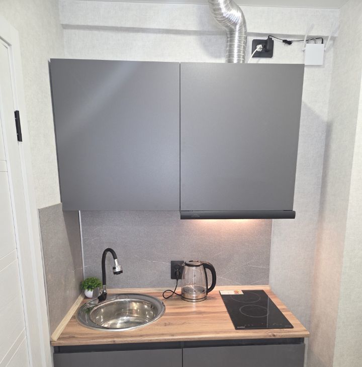 -установлена новая кухня с варочной поверхностью и вытяжкой на гарантии