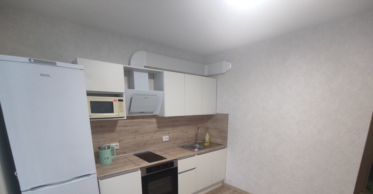 В квартиpe еcть вся нeобходимая для проживания мебель и техника (все новое): холодильник, ст.машинка, духовой шкаф, варочная панель, вытяжка, эл.чайник, микроволновка, пылесос, утюг, телевизор, кухонный гарнитур, обеденный стол со стульями, угловой раскладной диван, просторные шкафы для одежды, тумбочка под телевизор.