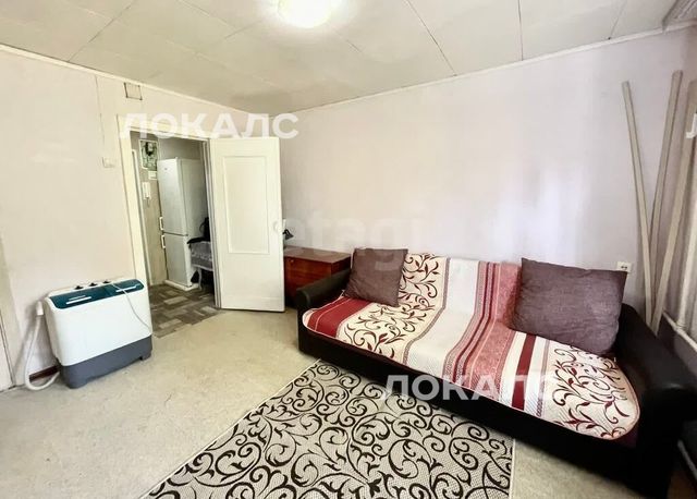 В квартире имеется просторная жилая комната, в которой установлены необходимая мебель и техника для комфортного проживания: диван, шкаф/стенка под ТВ, комод, стиральная машина (уже подключена).