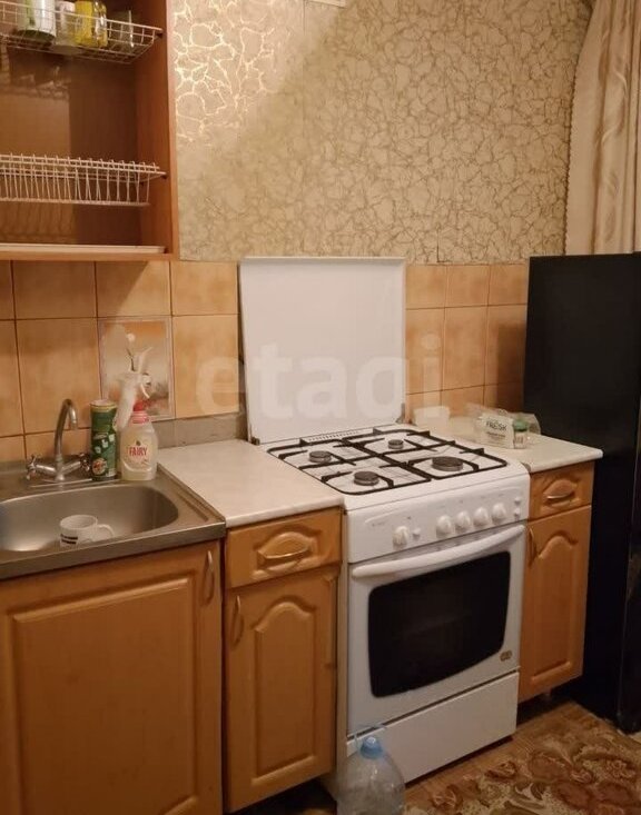 В квартире есть все для комфортного проживания: кухонный гарнитур, холодильник, плита, стиральная машина, телевизор, диван.