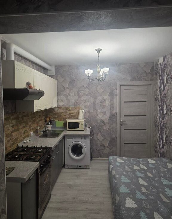 В квартире есть все для комфортного проживания: холодильник, плита, стиральная машина, кровать, кухонный гарнитур.