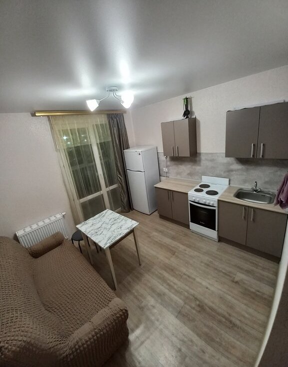 Уютная однокомнатная квартира в новом доме с ремонтом, есть всё необходимое, очень развитая инфраструктура. Огороженный двор, очень большая парковка
