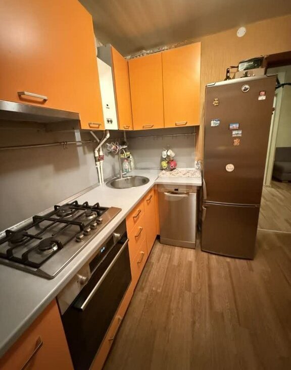 В квартире есть все для комфортного проживания: кухонный гарнитур, холодильник, плита, стиральная машина, телевизор, диван.