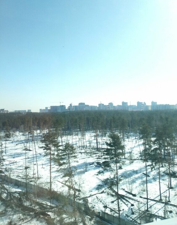 Красивый вид из окна на лес.