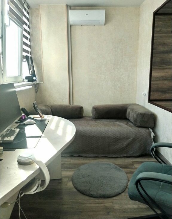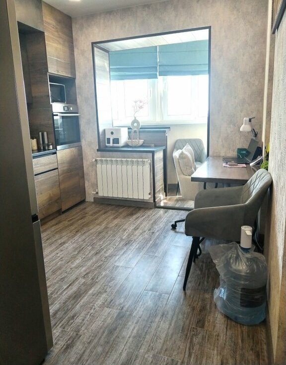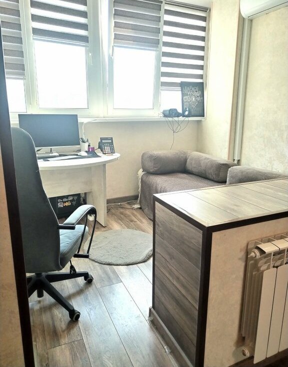 Балкон утеплен ,получилась дополнительная зона отдыха или рабочий кабинет, либо еще одна гостевая комната , как кому будет удобно.