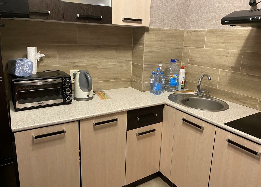 Из окон открывается вид на улицу, а во дворе есть спортивная площадка и открытая парковка. В квартире совмещенный санузел с новой сантехникой и стиральной машиной. Кухня оборудована необходимой техникой, включая холодильник и электрическую варочную поверхность.