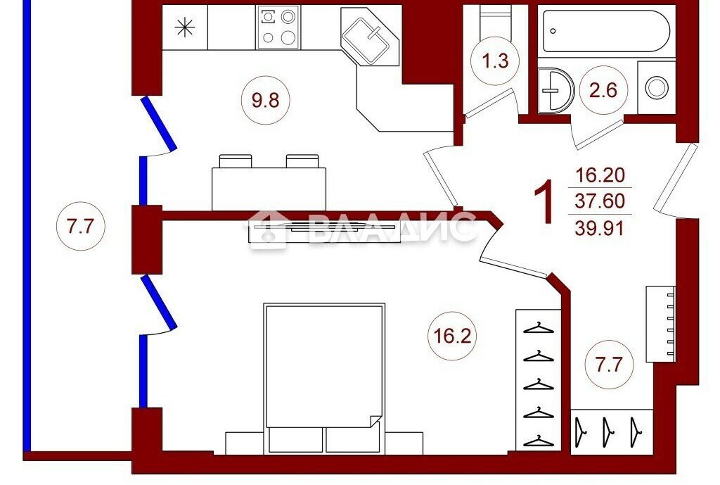 1-к кв. Воронежская область, Воронеж ул. Революции 1905 года, 31Д (42.0 м²)