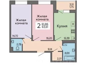 2-к кв. Воронежская область, Воронеж ул. Ломоносова, 114/22к2 (59.0 м²)