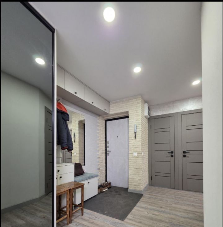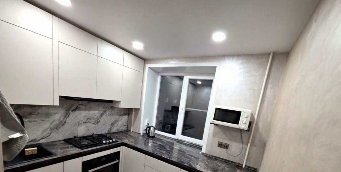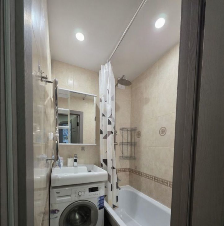 В квартире сделан качественный евроремонт. Уютная кухня, оборудована всем необходимым для комфортного проживания. В комнатах также есть мебель. Ванная комната оснащена ванной, в наличии стиральная машина. Окна выходят во двор, поэтому в квартире тихо и уютно. Предусмотрен застекленный балкон с удобными местами хранения.