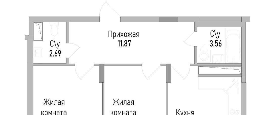 2-к кв. Воронежская область, Воронеж просп. Труда, 139Бк1 (57.64 м²)