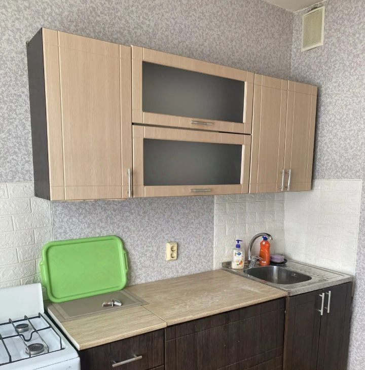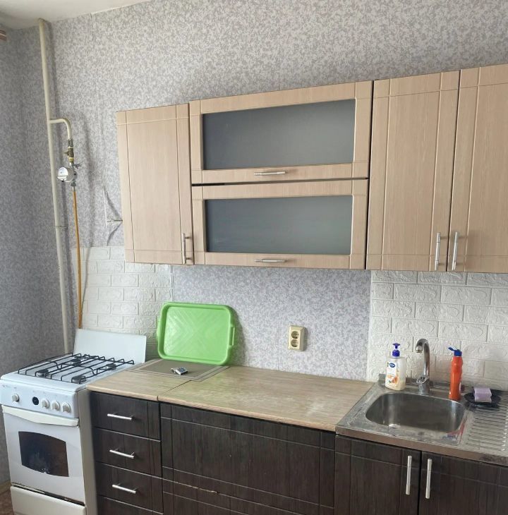 В наличии: кухонный гарнитур, стол. В зале один диван, кресло, стенка.
