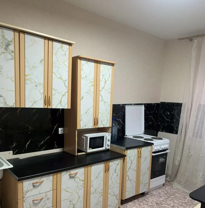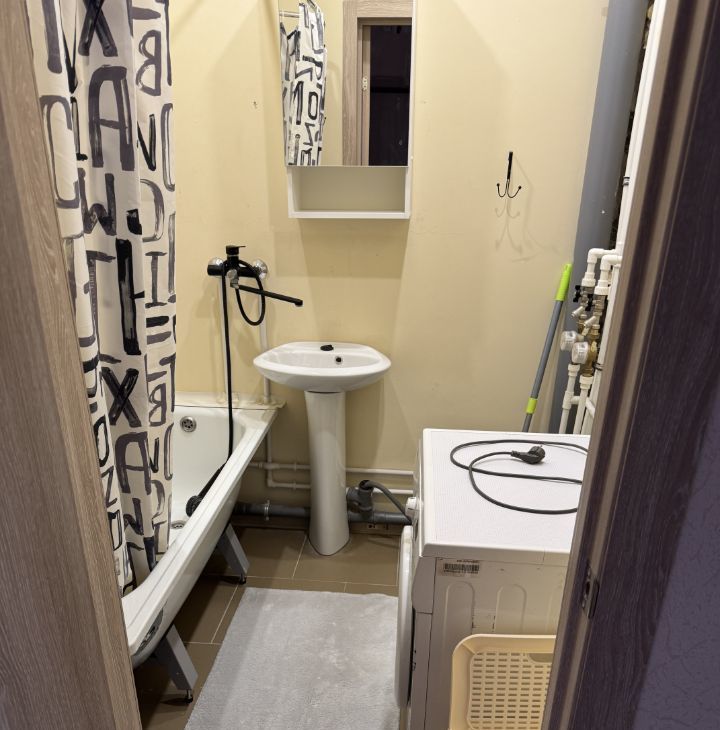 Сдается квартира в новом доме. В просторной кухне есть современная мебель и бытовая техника, включая холодильник. В комнате также установлена удобная мебель, а для вашего удобства предусмотрены телевизор и стиральная машина. Ванная комната оборудована ванной. У квартиры есть лоджия.