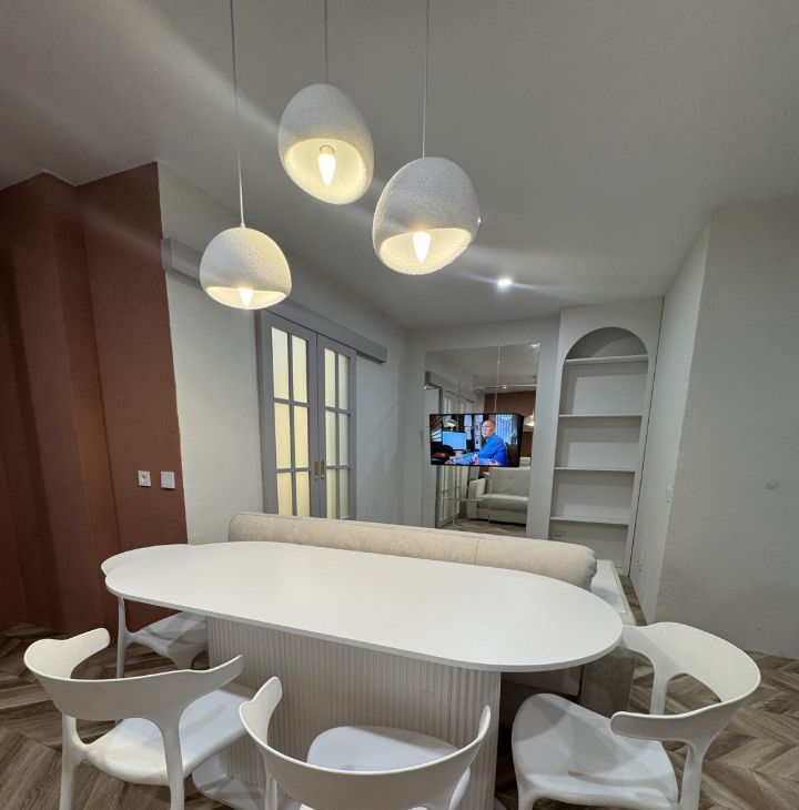 Просторная кухня-гостиная оборудована всем необходимым, включая посудомоечную машину. Холодильник, кондиционер и водонагреватель - будут установлены при заезде. Так же будет организовано рабочее место у окна в гостиной.
