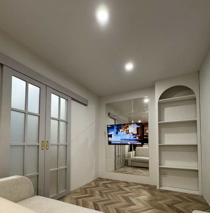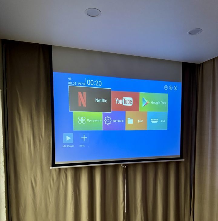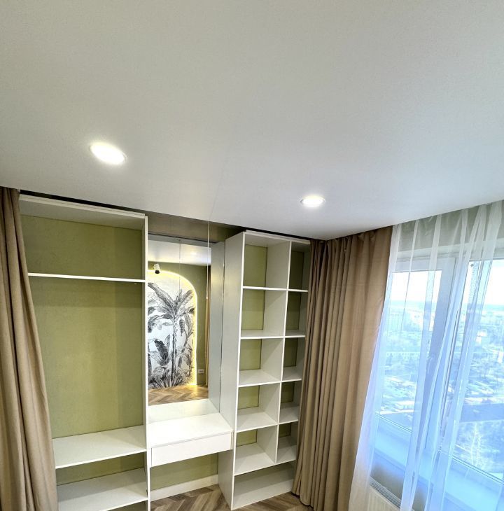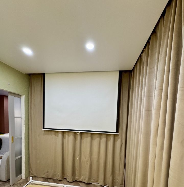 Спальня с красивым видом на город и водохранилище оснащена большим гардеробом, туалетным столиком и комфортной кроватью. А проектор позволит каждый день наслаждаться атмосферой домашнего кинотеатра.