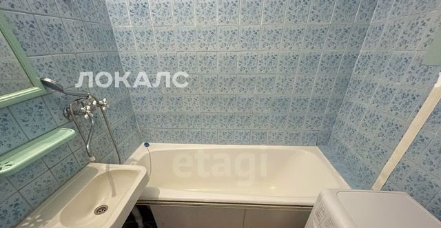 Санузел раздельный: унитаз, ванная, стиральная машина, зеркало, умывальник.