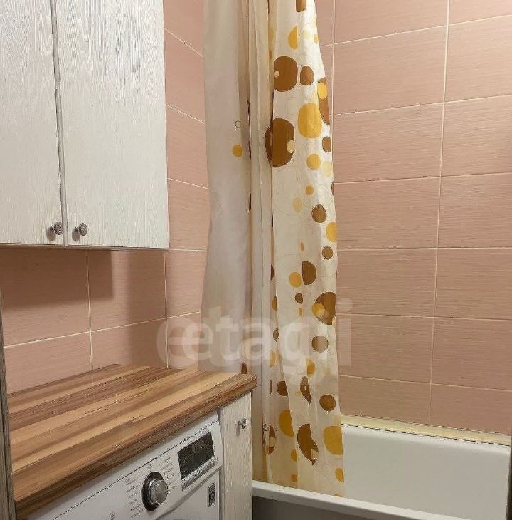 Санузел совмещен: унитаз, ванная, стиральная машина, зеркало, умывальник.
