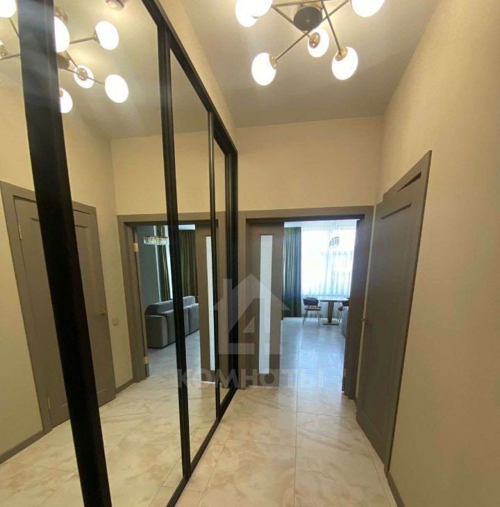 В квартире выполнен высококлассный ремонт, есть необходимая мебель и техника, кондиционер в каждой комнате, 2 с/у, гардеробная, автономное отопление, окна выходят на парк. Оснащена техникой (телевизор, холодильник, микроволновка, посудомоечная машина, пылесос, утюг, стиральная машина и тд). Две лоджии.