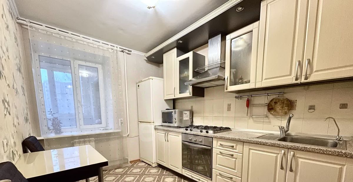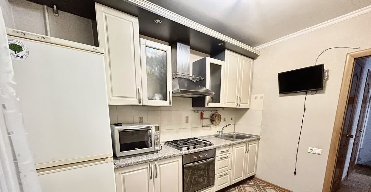 Также имеется отдельная кухня, оборудованная необходимой бытовой техникой и мебелью: газовая плита, холодильник, духовой шкаф, микроволновка, телевизор, кухонный гарнитур, стол, стулья.
