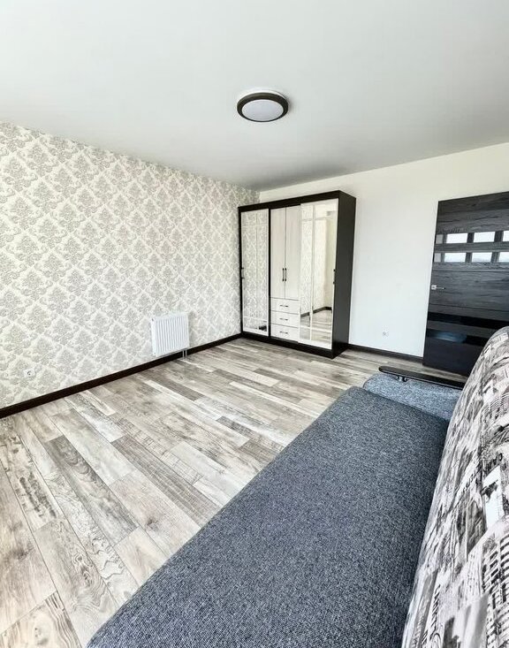 В квартире имеется просторные жилые комнаты, в которых установлена необходимая мебель для комфортного проживания: 2-а дивана, шкафы, стенка под ТВ.