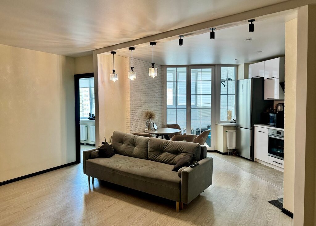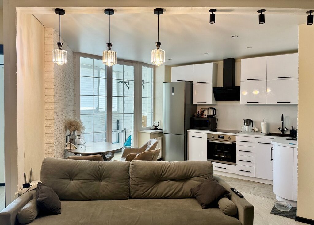 Кухня-гостиная позволяет комфортно принимать гостей и проводить время вместе.