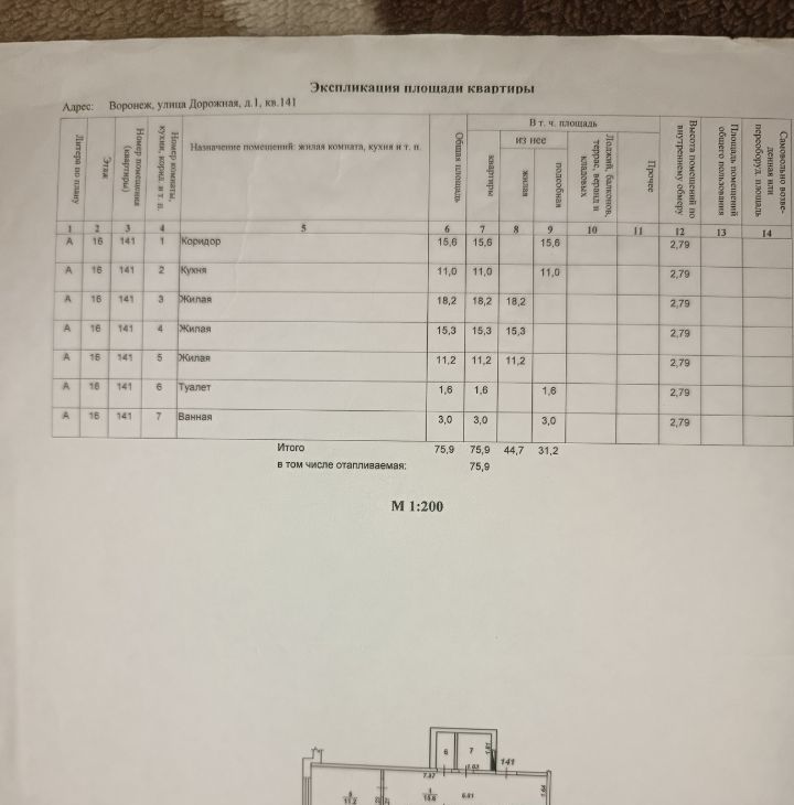 3-к кв. Воронежская область, Воронеж Дорожная ул., 1 (75.9 м²)