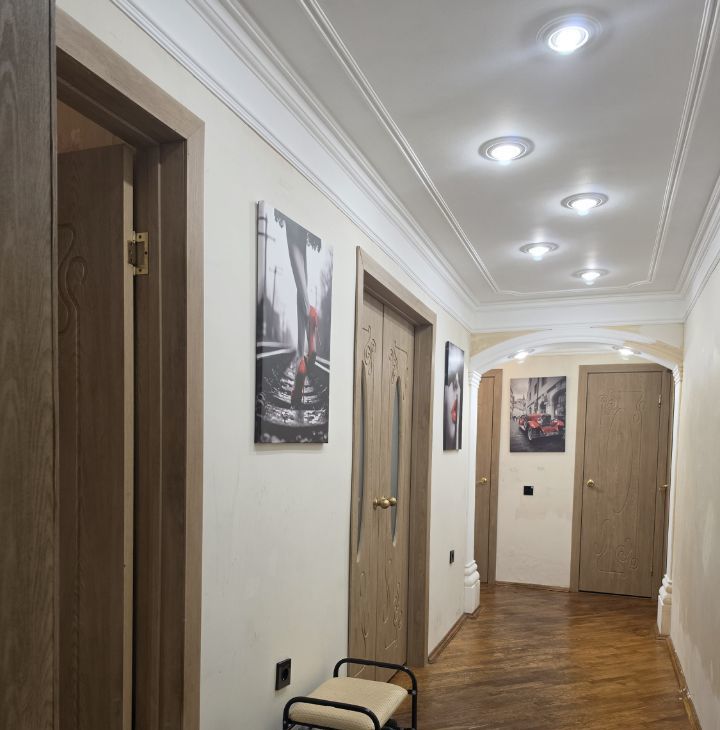 Продается уютная трехкомнатная квартира с дизайнерским ремонтом по адресу: Россия, Воронеж, Ленинградская улица, 104. Общая площадь составляет 60.2 кв. м, кухня — 8 кв. м. Квартира расположена на первом этаже 10-этажного кирпичного дома, построенного в 2004 году. Окна выходят как на улицу, так и во двор, поэтому в квартире всегда светло и комфортно.