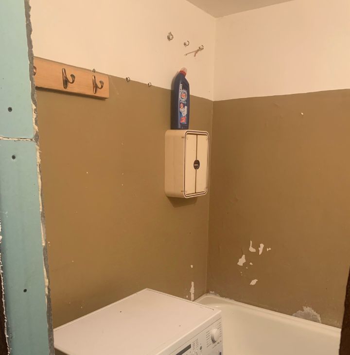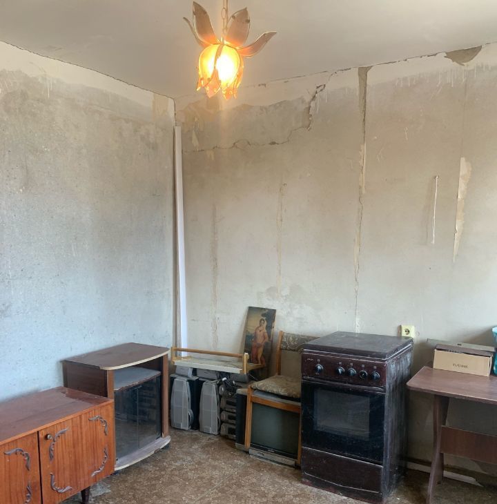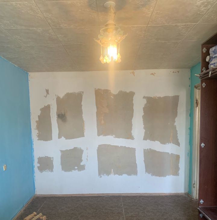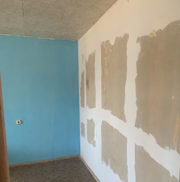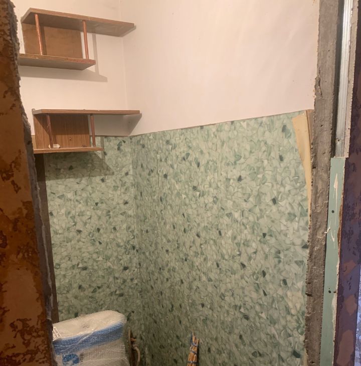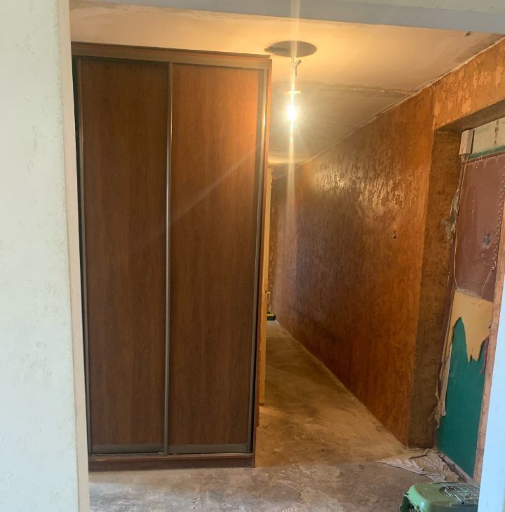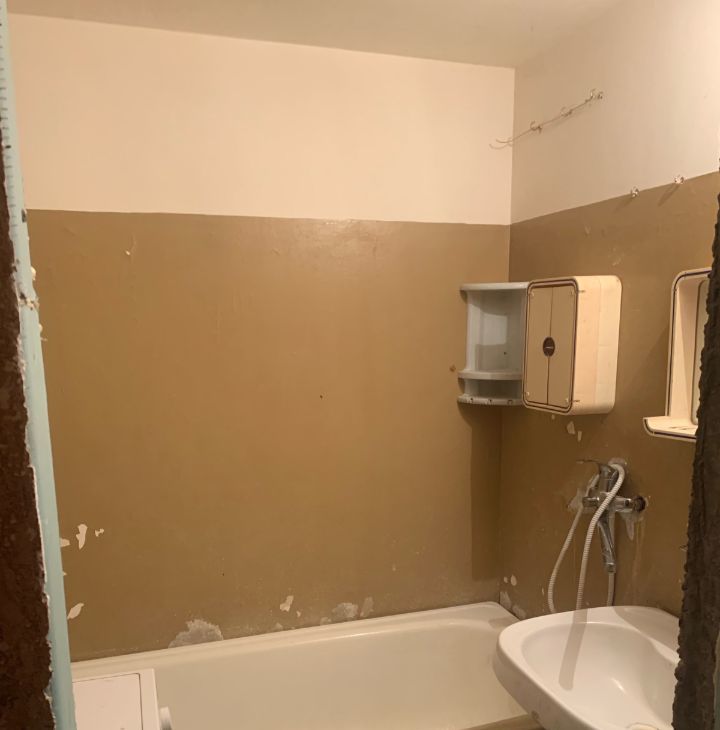Квартира уже частично подготовлена к ремонту: в гостиной, кухне и прихожей стены выровнены и отштукатурены — осталось сделать финальную отделку. В одной комнате стены готовы под обои или декоративную штукатурку, в детской — сняты обои. Санузел раздельный, в базовом состоянии.