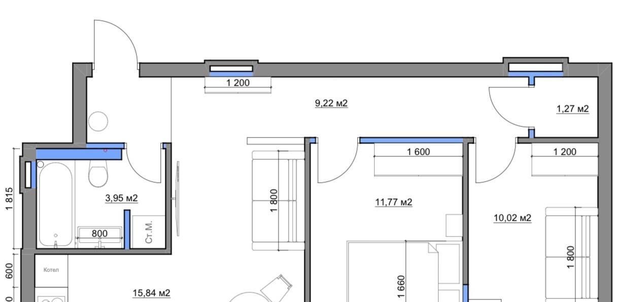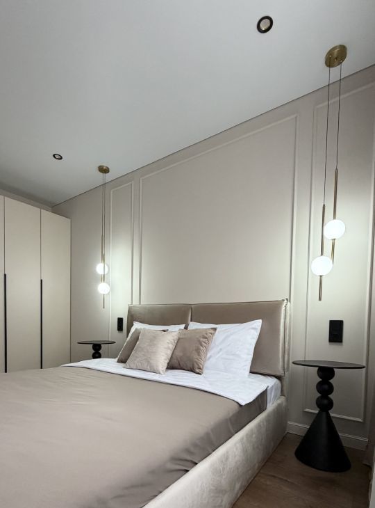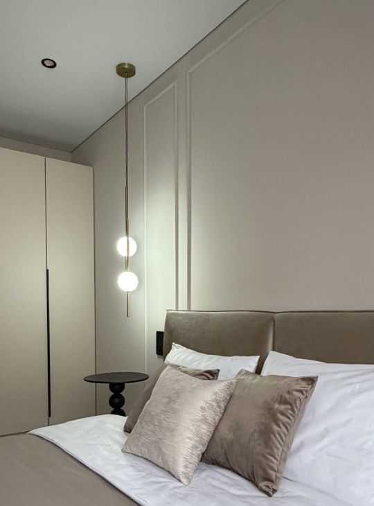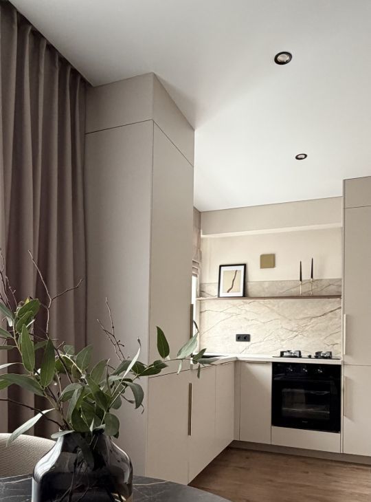 Трёшка с просторной кухней-гостиной, большой отдельной спальней и комнатой свободного назначения ( детская, кабинет или ещё что-то). Плюс просторная гардеробная комната.