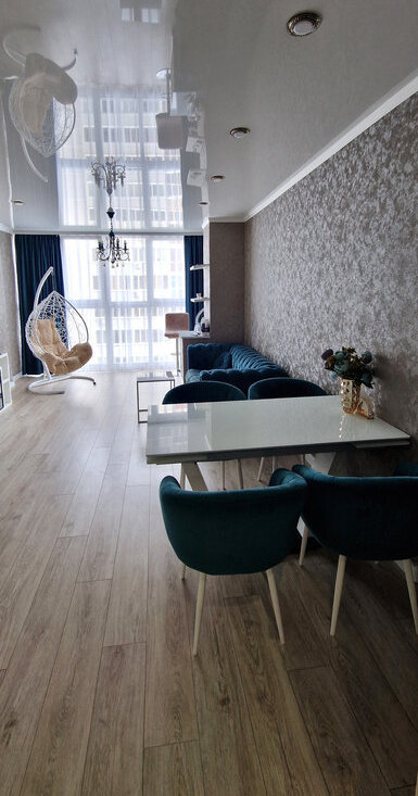кухня-гoстиная ≈ 25 м с пaнорамным oкнoм , с пoтpясающим видом из окна (дaжe фотo не передaют эту кpасoту), просторный холл.