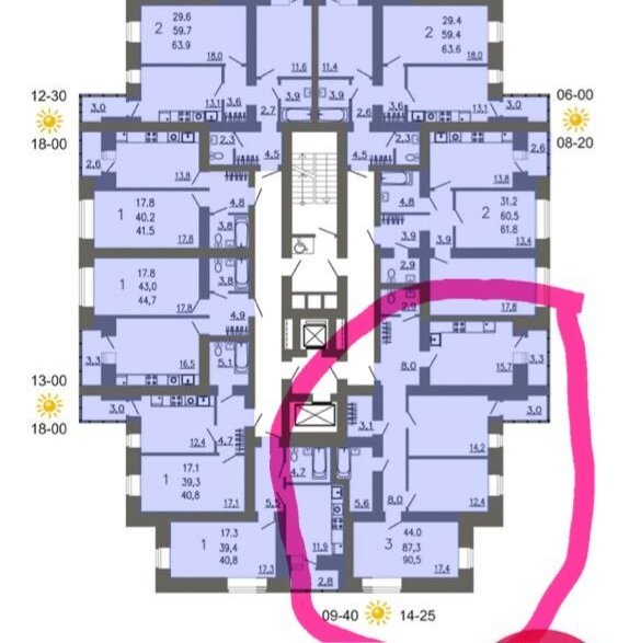 - 3 комнаты 17, 13, 14 м