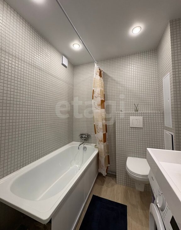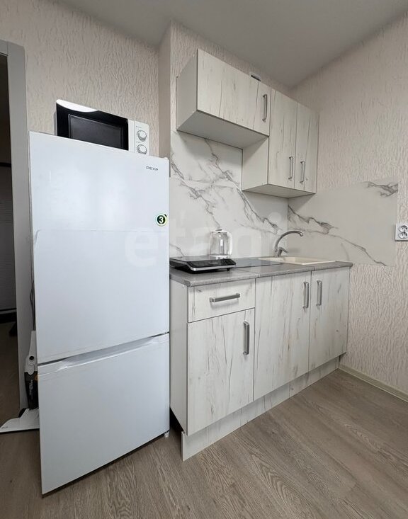 В квартире есть все для комфортного проживания: кухонный гарнитур, холодильник, плита, свч, стиральная машина, телевизор, диван, пылесос, утюг, фен.
