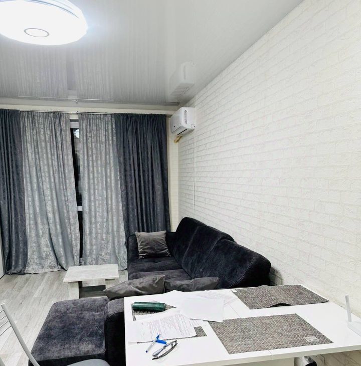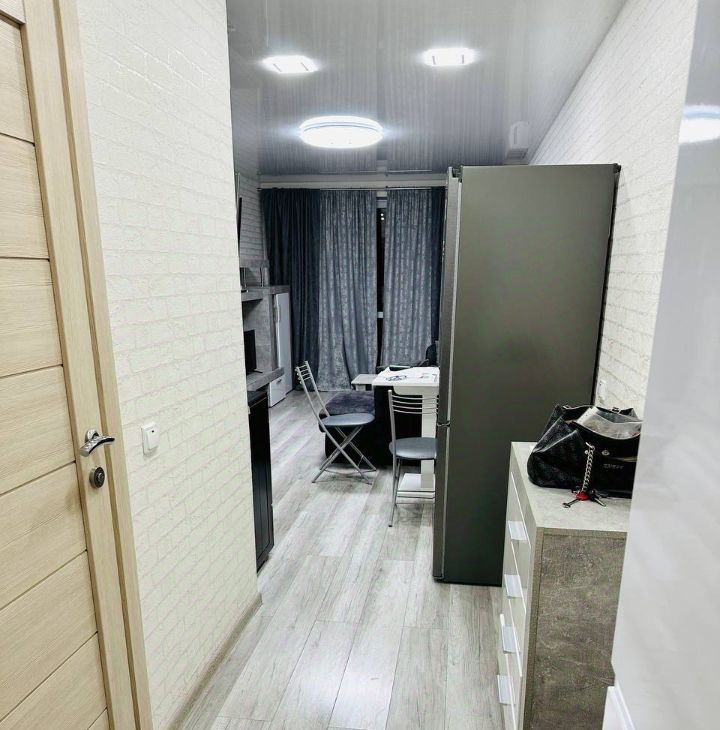 Продается современная стильная квартира-студия от собственника в связи с переездом. Агентства прошу не беспокоить. Общая жилая площадь составляет 27,3 м², дополненная просторной застекленной лоджией площадью 3м², откуда открывается приятный вид на ухоженный двор и тихий частный сектор.