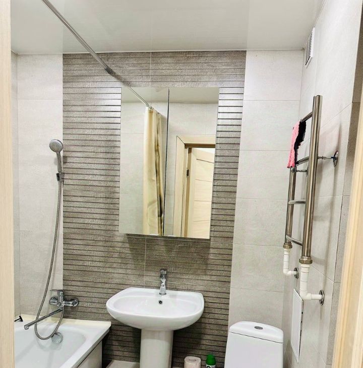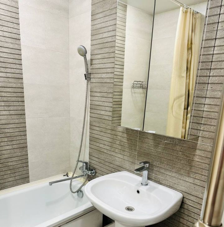 Квартира теплая и уютная, с совмещенной ванной комнатой. Квартира полностью готова к заселению: остается качественная мебель и техника от надёжных производителей, приобретенная для личного использования. В комплекте: гардеробный шкаф, стенка-шкаф, комод, обеденный стол, угловой диван, кондиционер, кухонный гарнитур с доводчиками, индукционная плита с духовым шкафом, кухонная вытяжка, стиральная машина, холодильник, микроволновая печь и электрочайник.