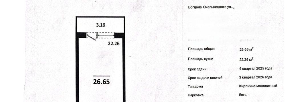 Общая площадь: 26,65 м² — идеально для одного человека или молодой пары.